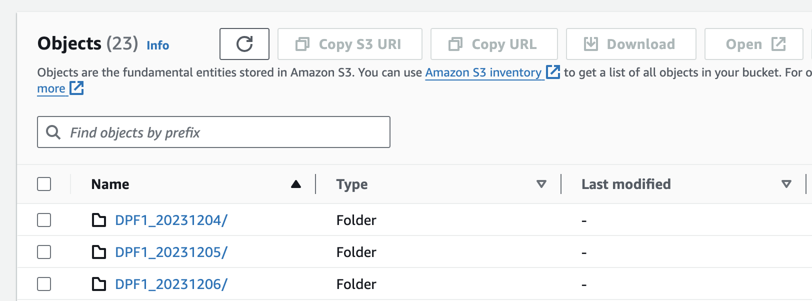 - In a web browser, log in to the Amazon Web Services S3 Console using the credentials provided by the survey team lead. Tap on the bucket named mv-dpf-dump. If it does not already exist, create a folder for the current date the the name of iPad (found in Settings->General->About). Upload the images to the folder. An example of the folder structure is below.